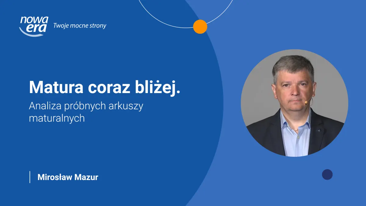 Webinarium będzie poświęcone analizie próbnych matur CKE i Nowej Ery. W programie znajdą się charakterystyka arkuszy oraz omówienie wybranych zadań z obu arkuszy ze szczególnym uwzględnieniem różnych typów zadań, najczęściej popełnianych błędów, a także pracy z różnymi typami załączników.